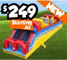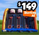 Competitors battle up an inclined course through obstacles and barricades and down a slide to see who can finish first.Dimensions: 42'L x 11'W x 11'H
