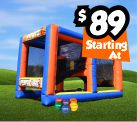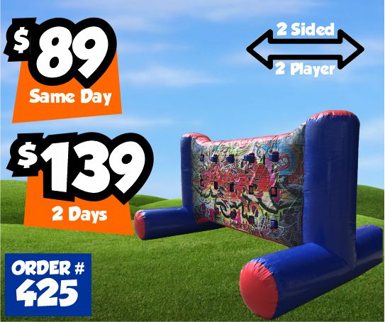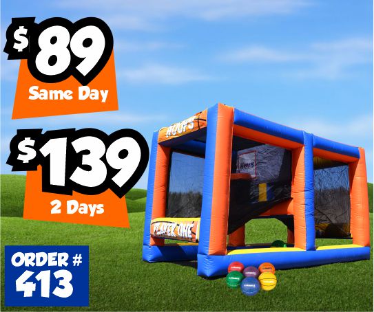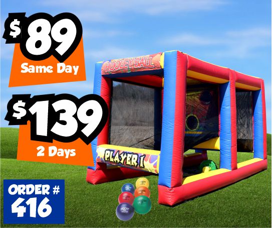 Similar to Hoops, but instead of shooting baskets you are throwing foam ball's at the backdrop. Make sure to throw all your foam ball's in the holes before your opponent.Dimensions: 14'L x 8'W x 8.5'H