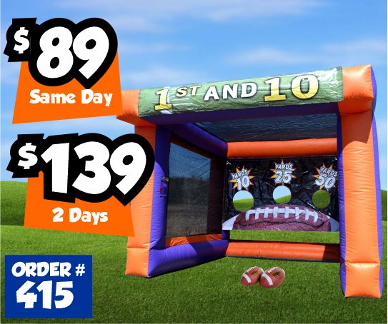 Throw the football into the different holes on the scoring backdrop.Dimensions: 10'L x 10'W x 8.5'H