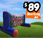 A twist on both Reaction Walls and the traditional Batak, Battle Bricks pins you up against another player to see who can push the most bricks onto their opponents side.Dimensions: 8'L x 13'W x 7'H